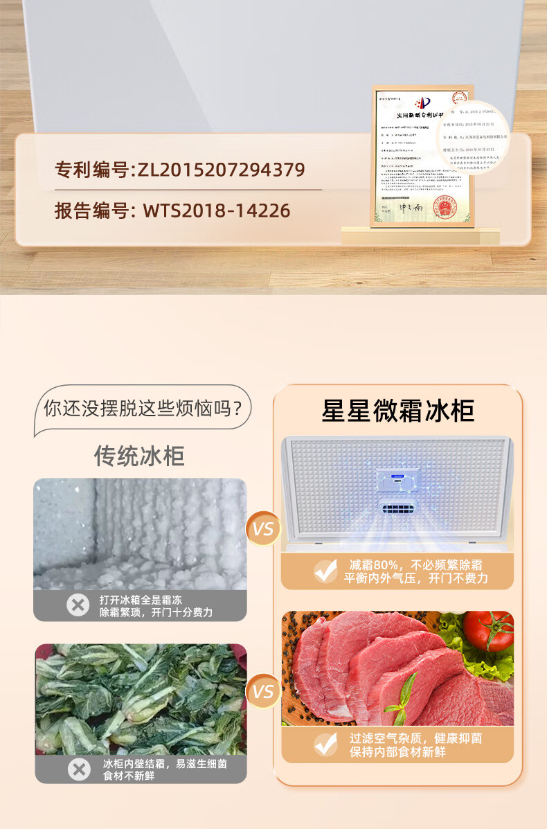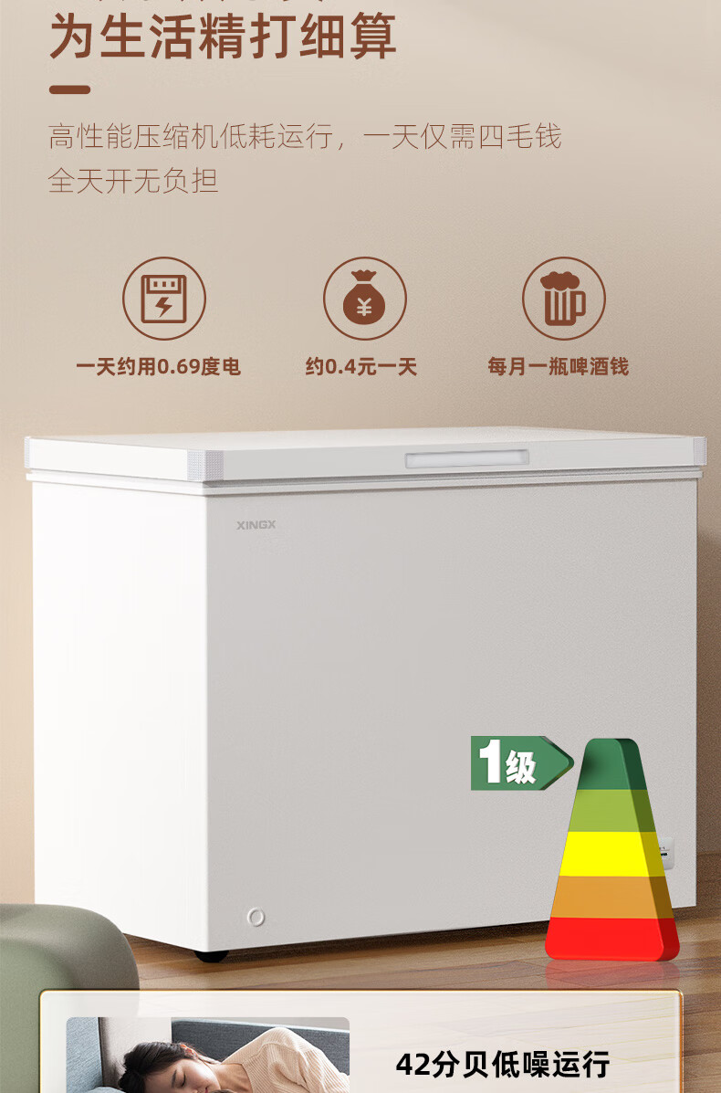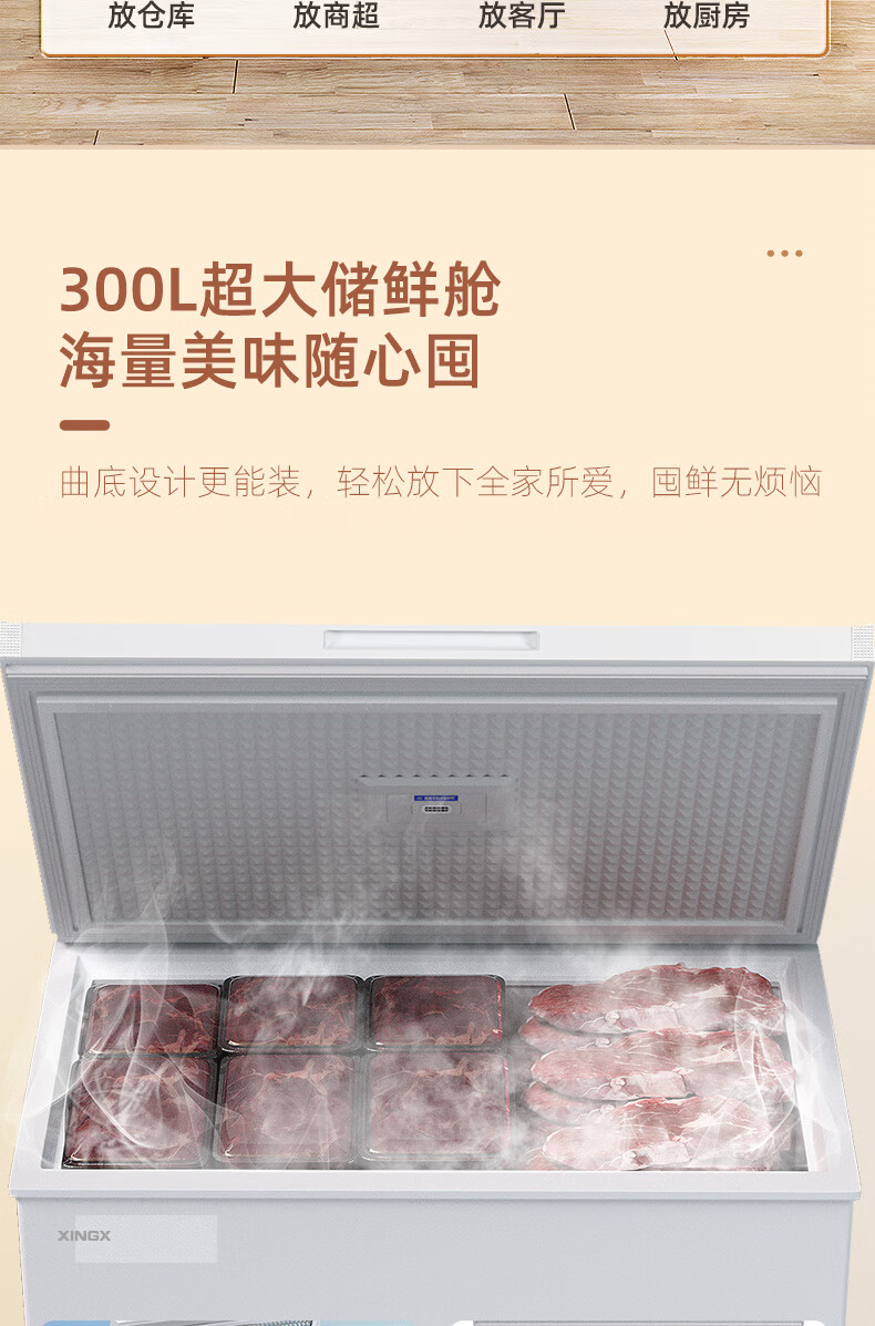 星星(XINGX)300升家用减霜净味冰柜 冷藏冷冻转换冷柜 节能顶开冰箱 BD/BC-300QJ国家补贴