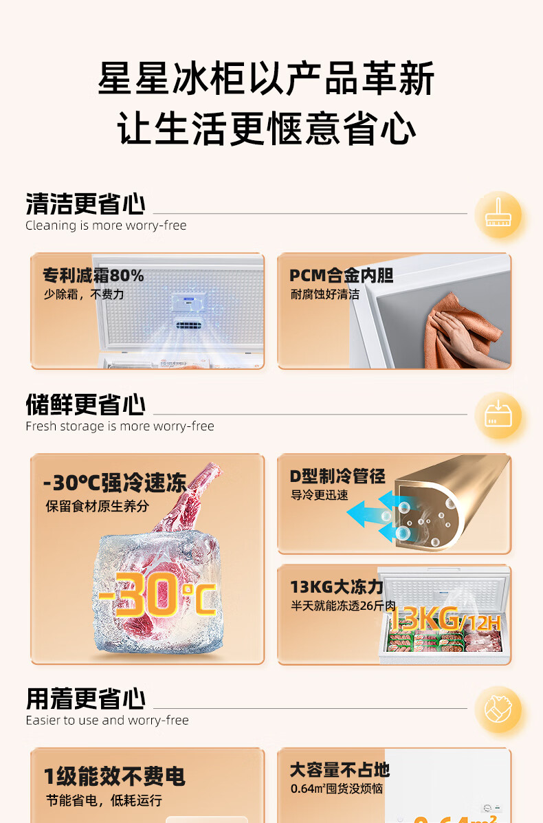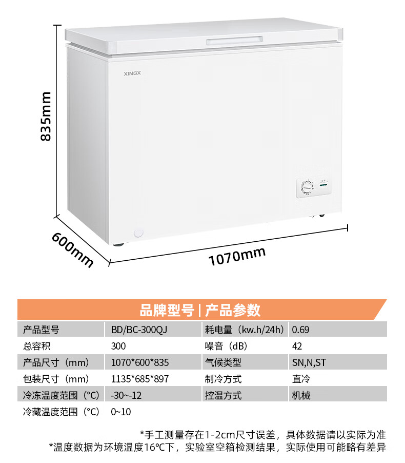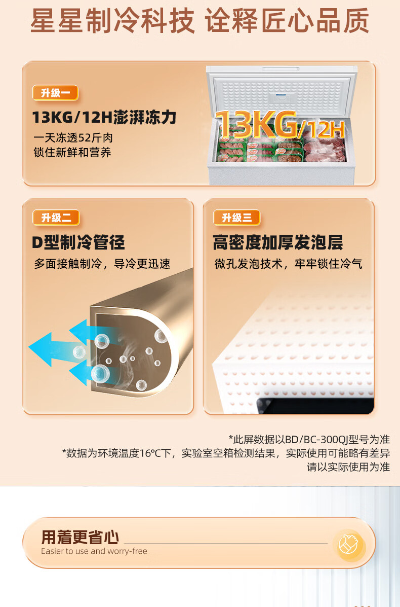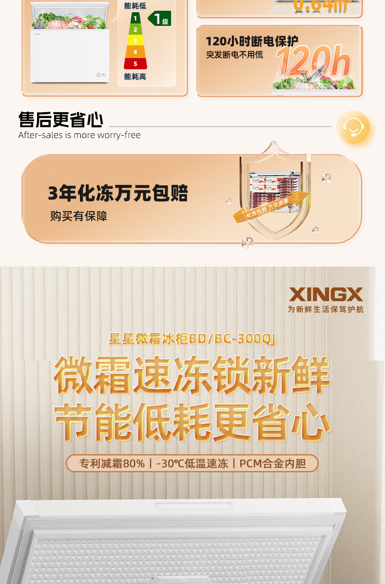 星星(XINGX)300升家用减霜净味冰柜 冷藏冷冻转换冷柜 节能顶开冰箱 BD/BC-300QJ国家补贴
