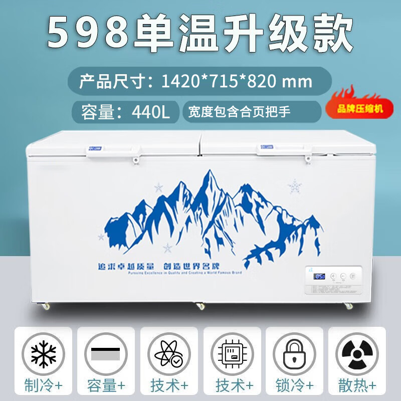美凌时尚家冰柜商用家用冷柜卧式大容量全冷冻柜旗舰展示柜 598单温丨一级节能丨1.42米 【智能数显丨6D铜管扩容减霜丨温度-35~+5℃】