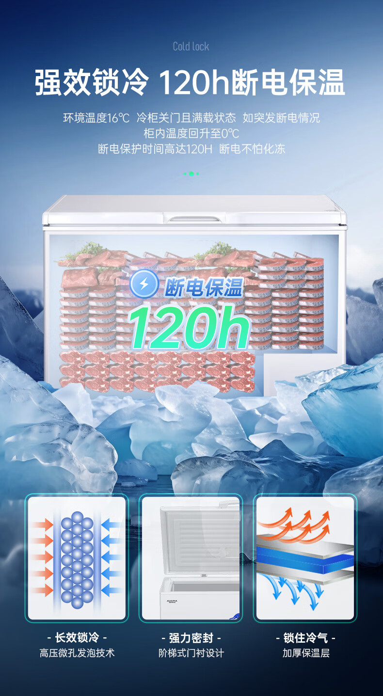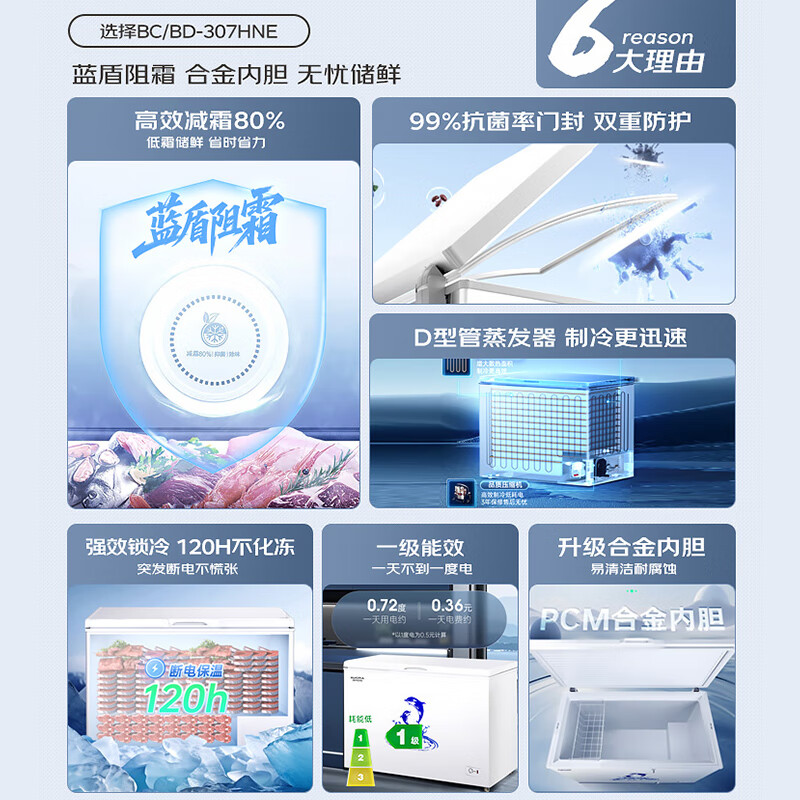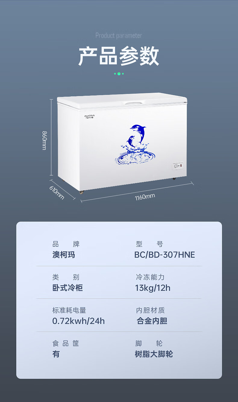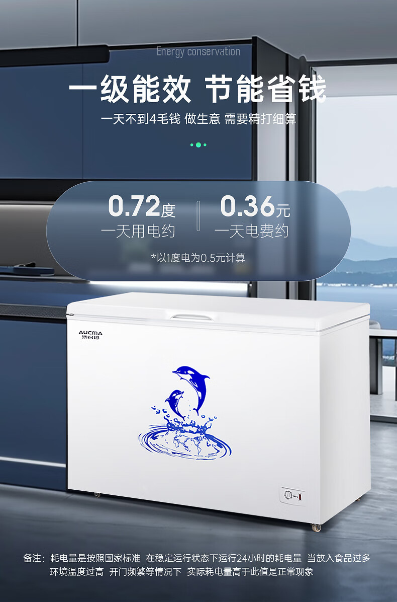 澳柯玛(AUCMA)307升减霜冰柜家用大容量冷藏柜冷冻柜 卧式冷柜冰箱雪糕柜一级能效 BC/BD-307HNE 国家补贴20%