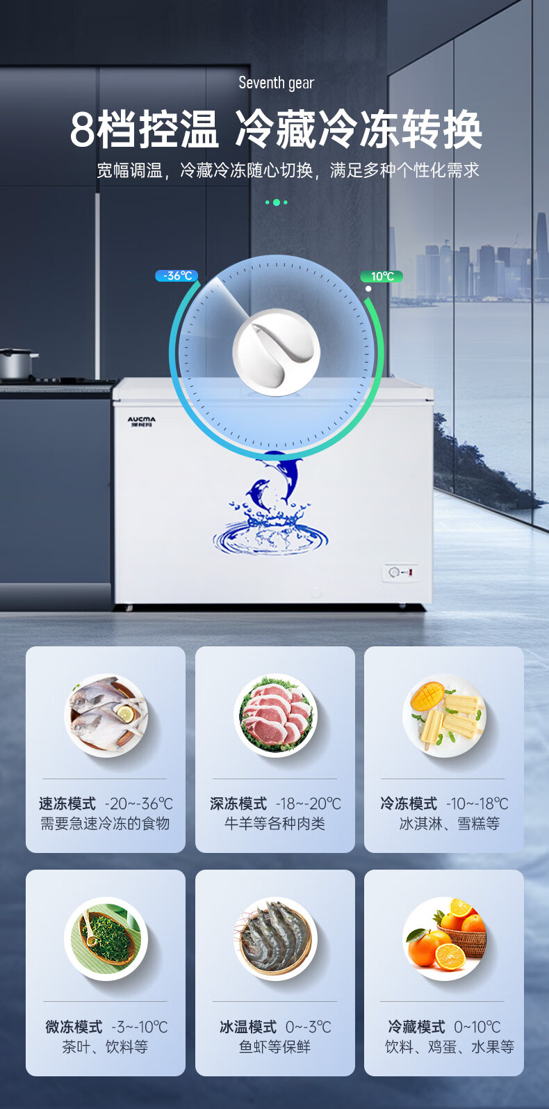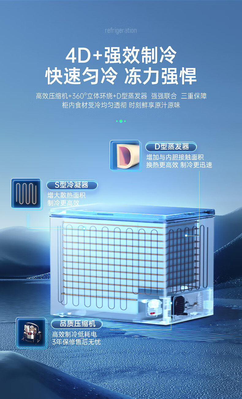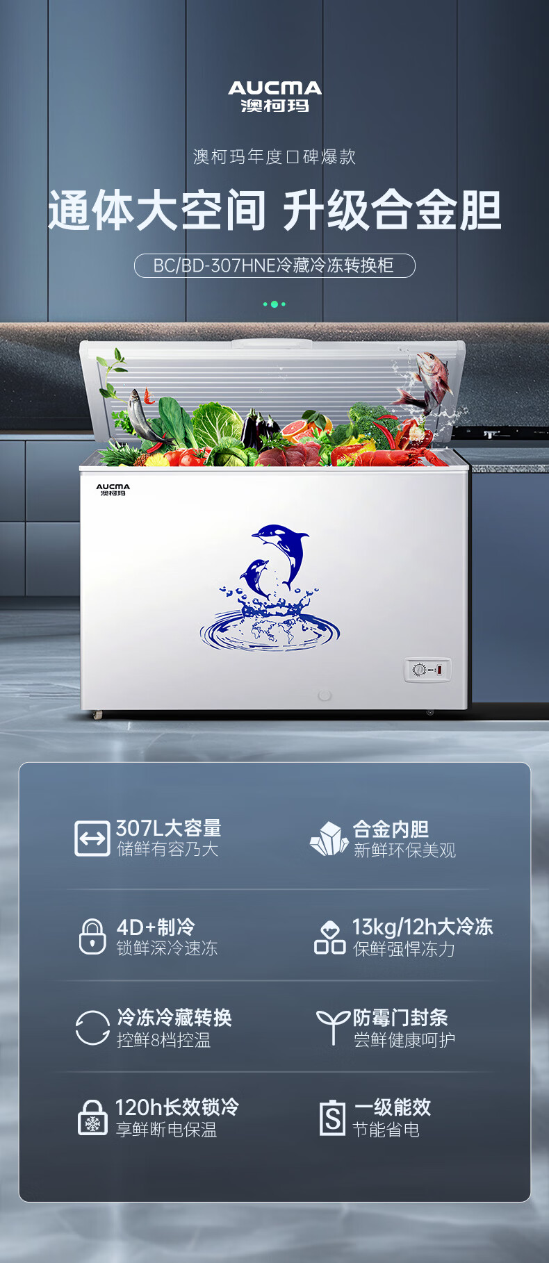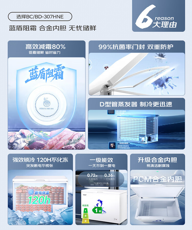 澳柯玛(AUCMA)307升减霜冰柜家用大容量冷藏柜冷冻柜 卧式冷柜冰箱雪糕柜一级能效 BC/BD-307HNE 国家补贴20%