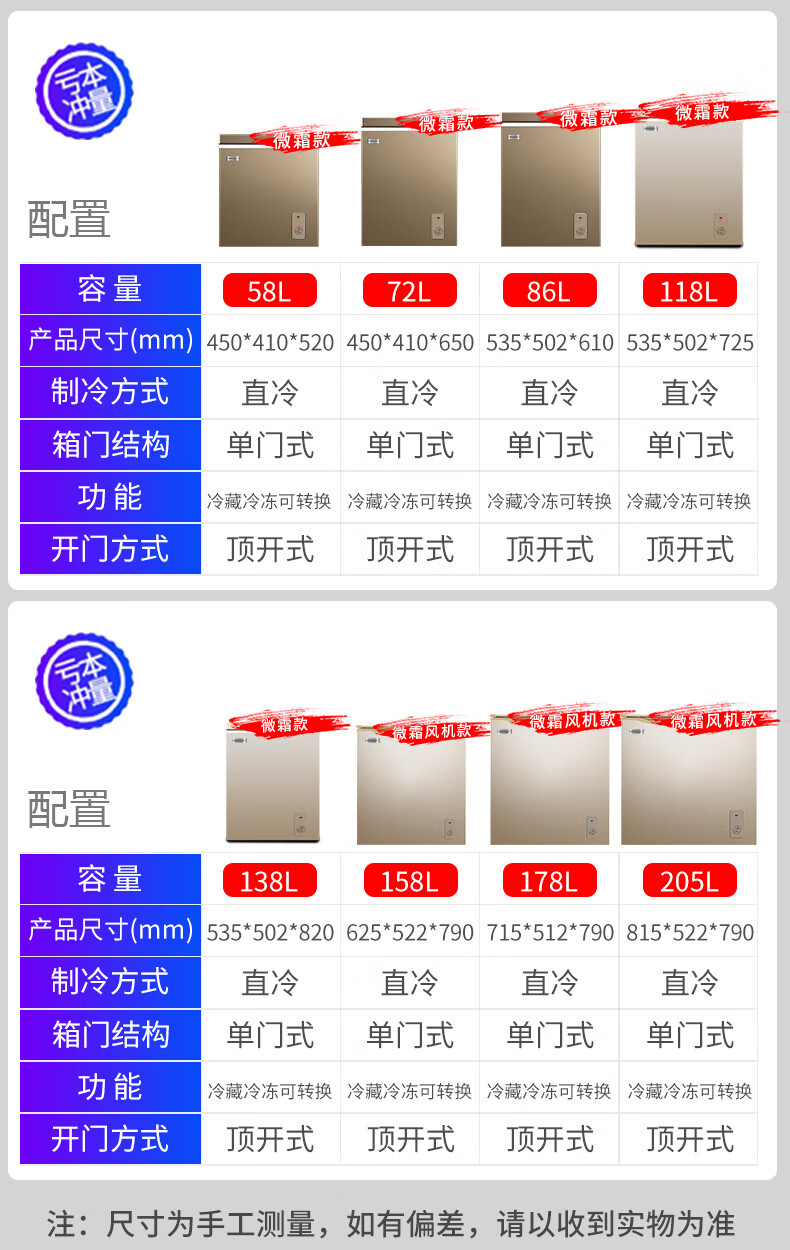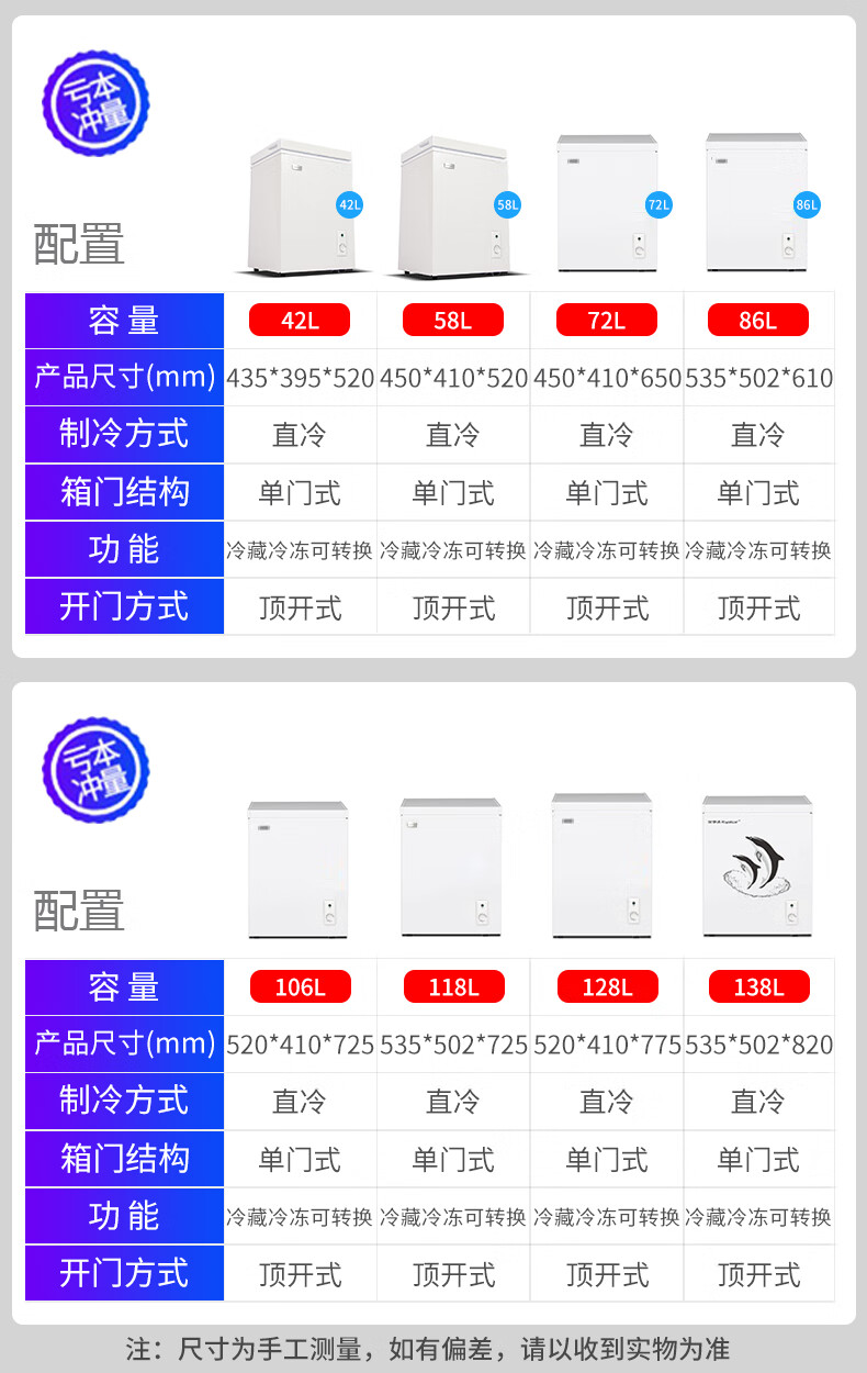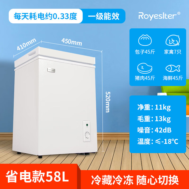 荣事达(Royalstar)小冰柜家用小型冷冻保鲜迷你冷藏商用卧式冷柜单用储母乳柜节能省电 【万人推荐 一级节能】单温 58L