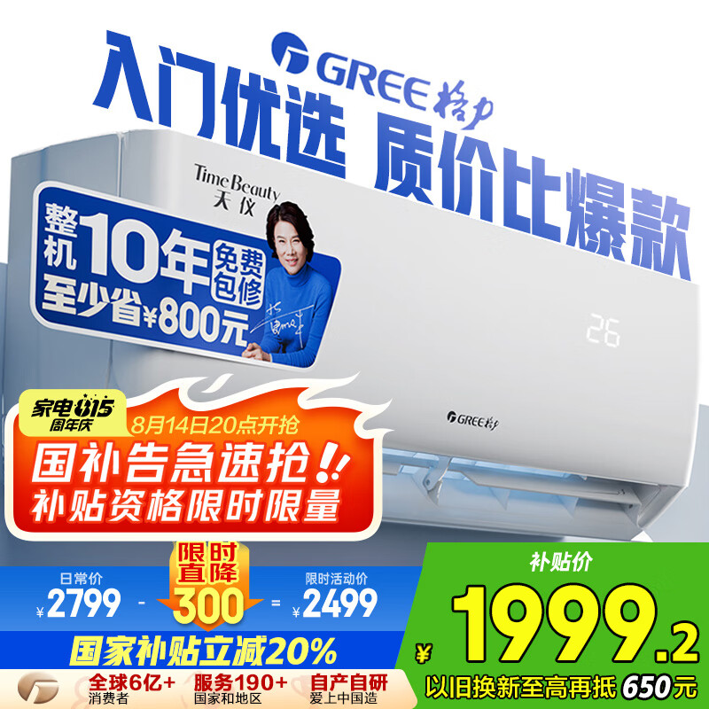 格力(GREE)1.5匹天仪 新1级能效变频 壁挂式卧室省电空调挂机KFR-35GW/(35504)FNhAa-B1 家电国家补贴