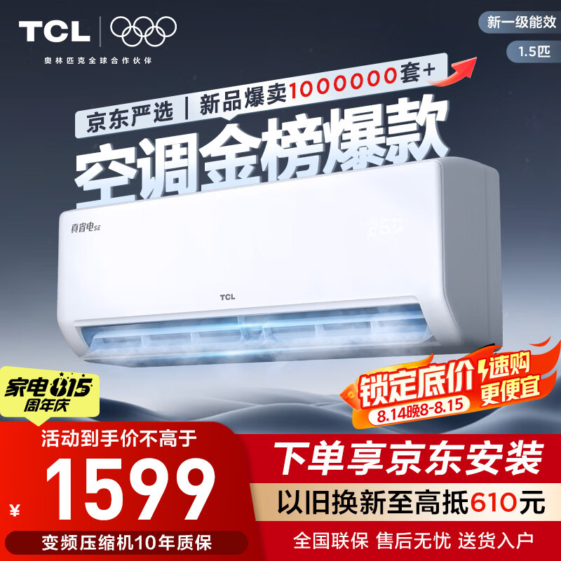TCL京东联名大1.5匹新一级能效真省电SE挂机空调冷暖变频KFR-35GW/JD21+B1国家补贴以旧换新