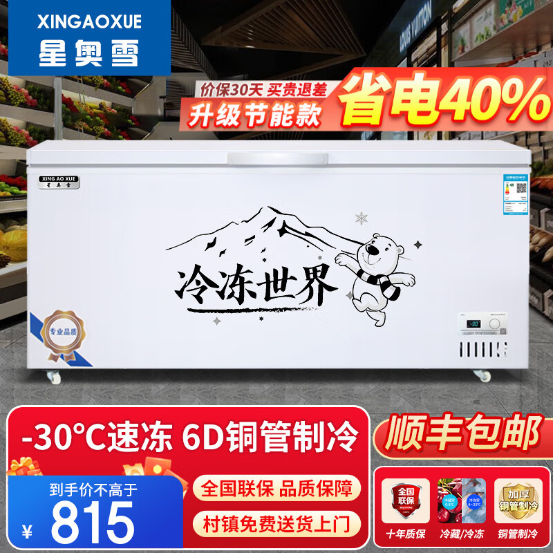 星奥雪冰柜商用家用卧式冷柜大容量冷藏冷冻展示柜双温商用大容量冷冻柜商用大冰柜 728单温铜管升级款(长1.45米)