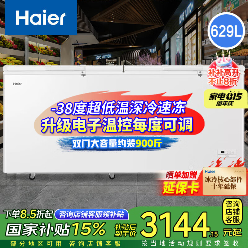 海尔(Haier)冰柜家用大容量冷藏冷冻两用一键转换商用全冷冻减霜小型冷柜超低温速冻300/400/500升以上 【-38度速冻】电子温控 629L