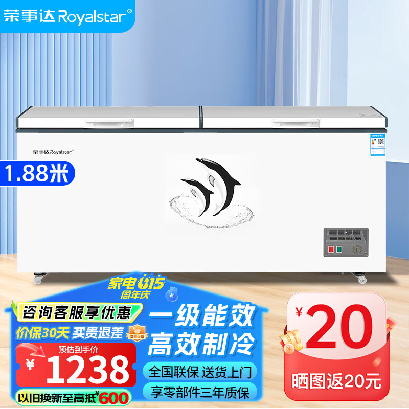 荣事达(Royalstar)冰柜商用大容量全冷冻卧式冰柜家用冷藏冷冻两用冷柜双温商用大冰柜冷冻柜展示柜 【高性价比】788单温【一级能效 机械温控】