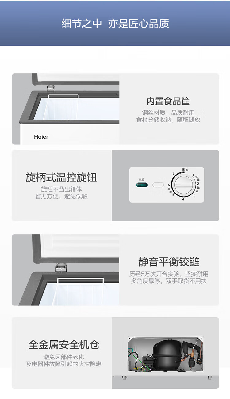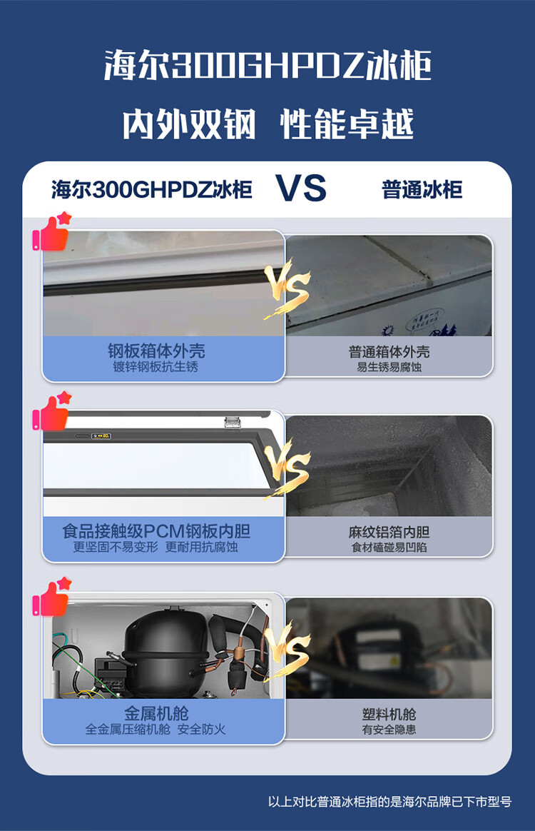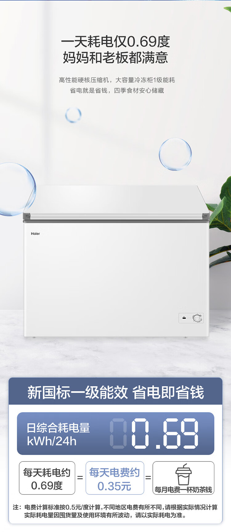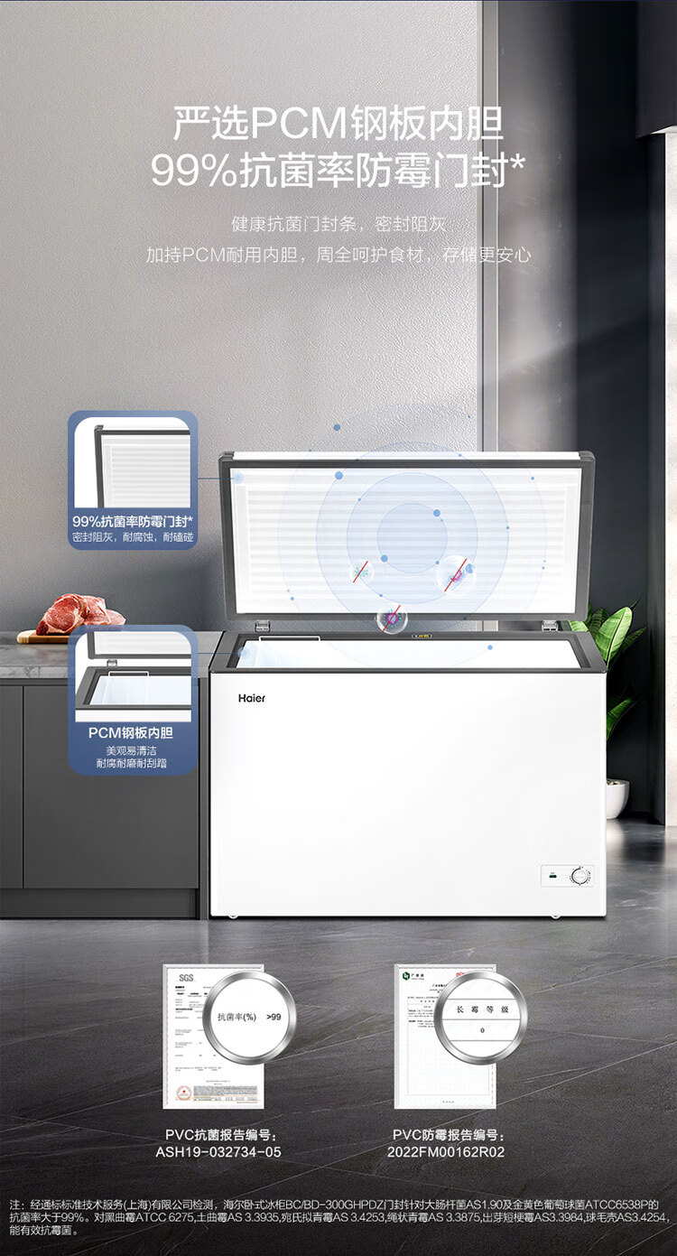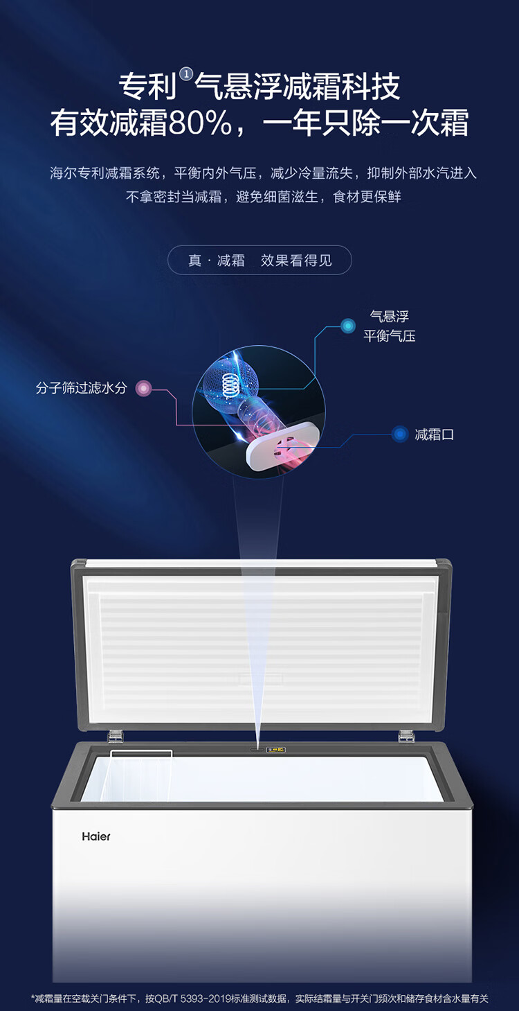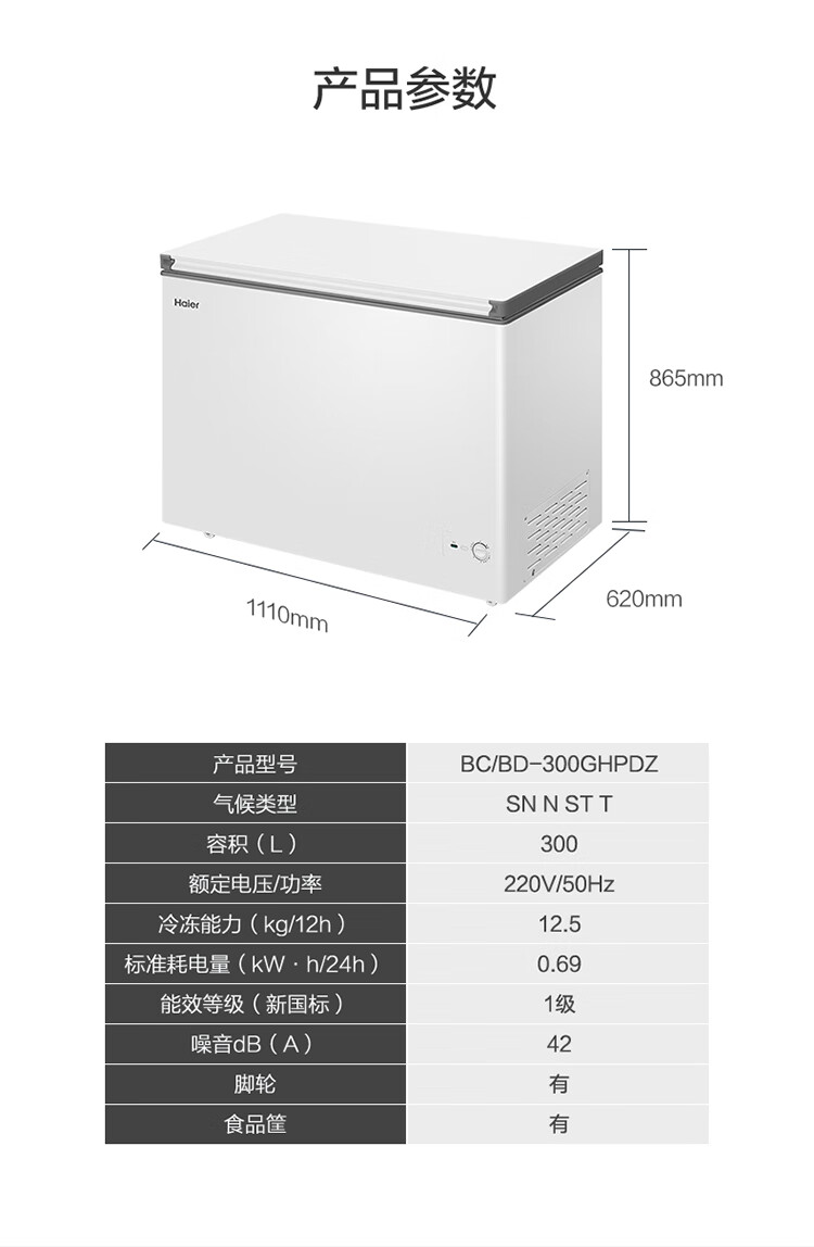 海尔(Haier)300升低霜大容量小冰柜家用商用 冷藏冷冻柜两用冰柜京东自营小型冰箱冷柜BC/BD-300GHPDZ国家补贴