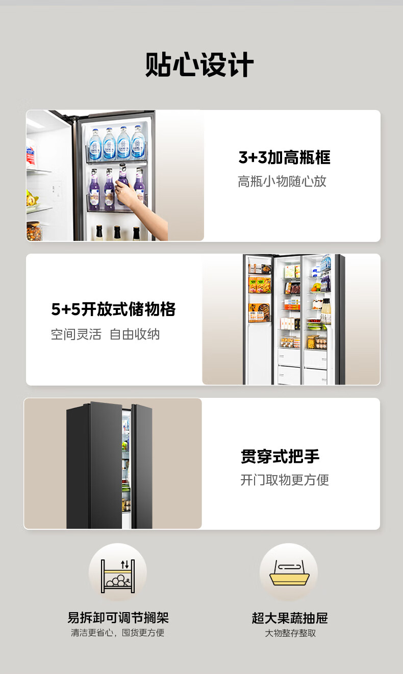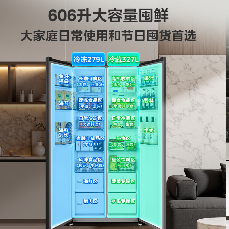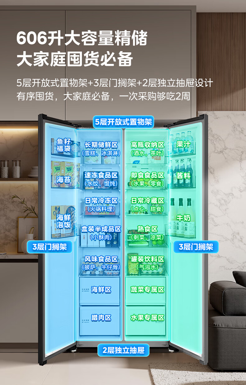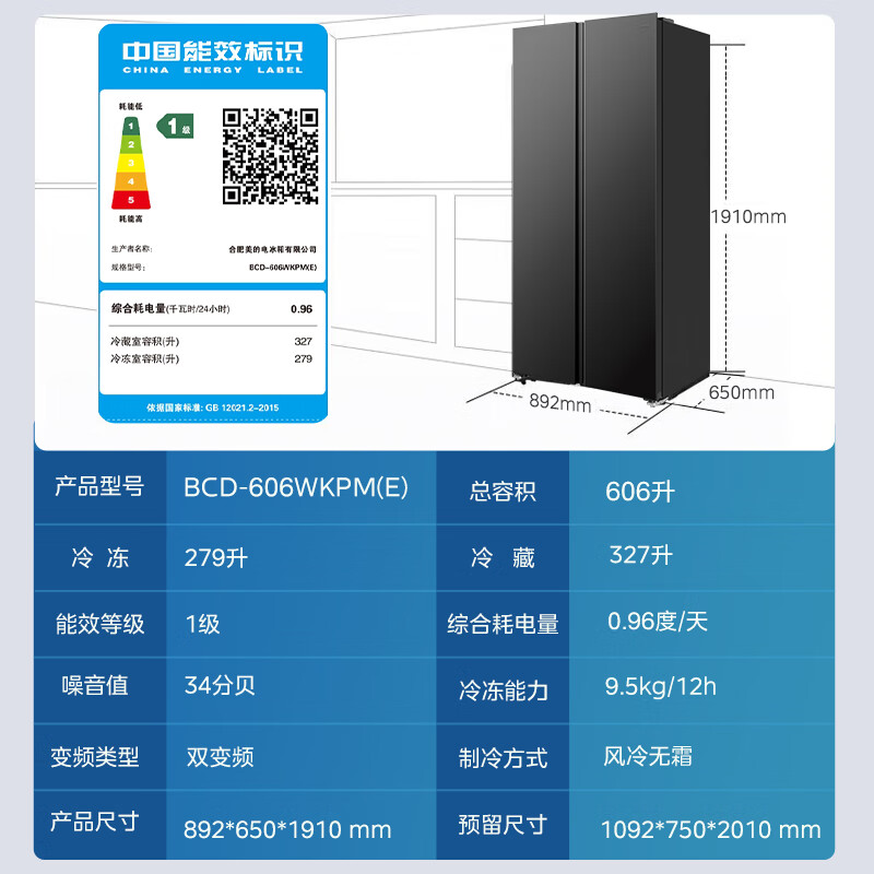 美的(Midea)606L大容量对开门冰箱双开门双变频一级能效节能省电家用超薄电冰箱风冷无霜净味 国家补贴20% 605/607 新品升级款Pro