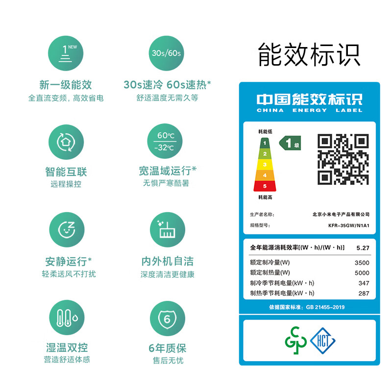 TCL京东联名大1.5匹新一级能效真省电SE挂机空调冷暖变频KFR-35GW/JD21+B1国家补贴以旧换新